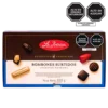 Deliciosos Bombones de chocolate surtidos con rellenos de: castaña, crema de coco, crema de chocolate, crema de leche, crema sabor a menta, barquillo relleno de crema de castaña con pasta de cacao, confitura de ciruela, mazapán de castaña, caramelo blando sabor a vainilla, turrón. Cobertura de chocolate: 52% cacao.